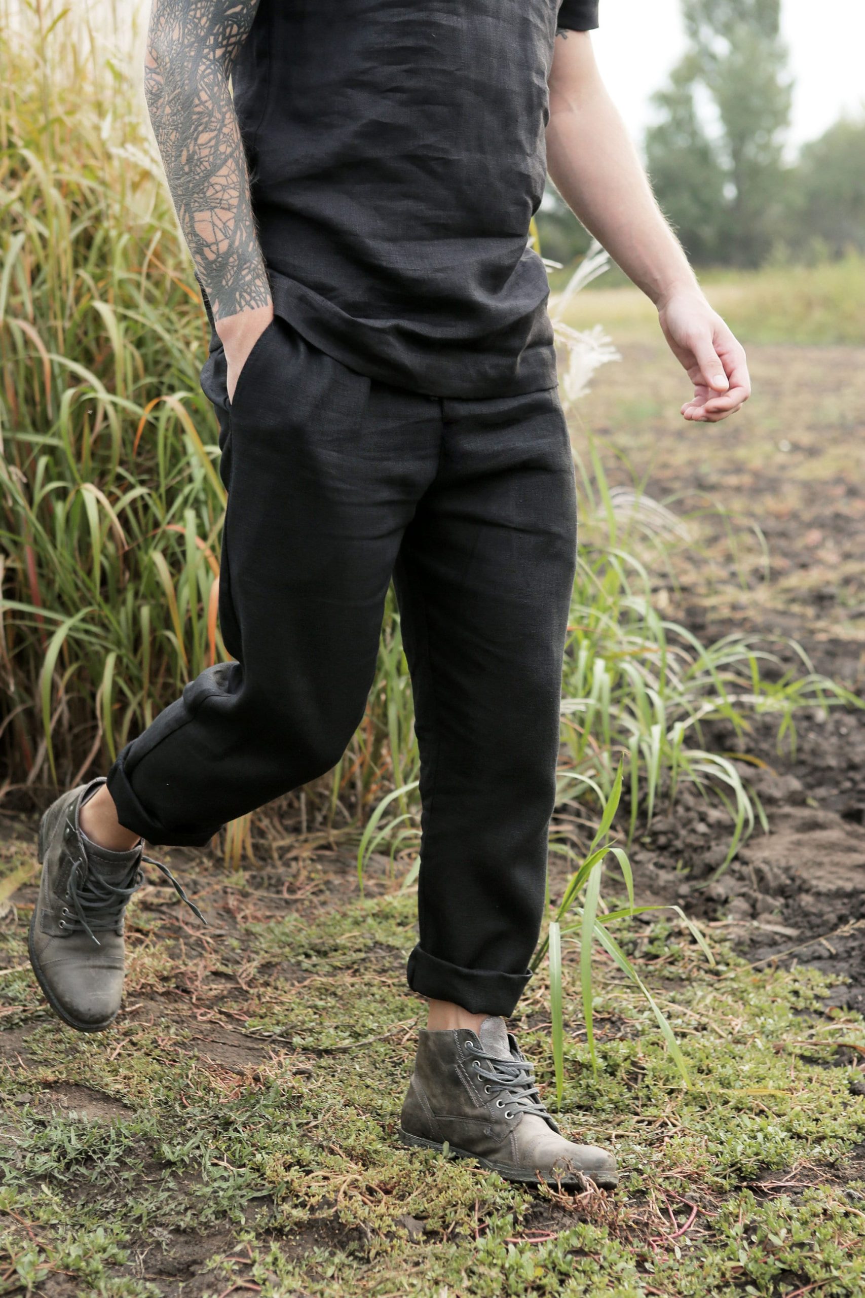 Linen Mens Costume Pants T Shirt Gift For