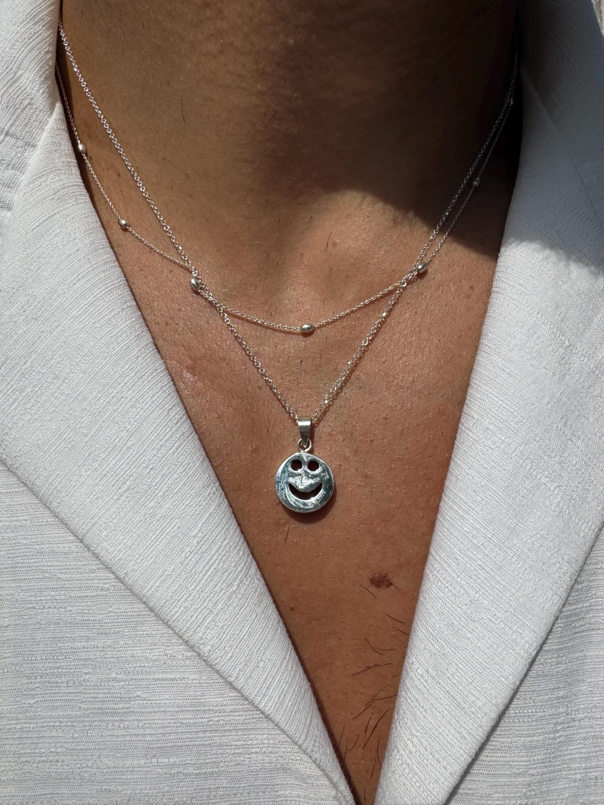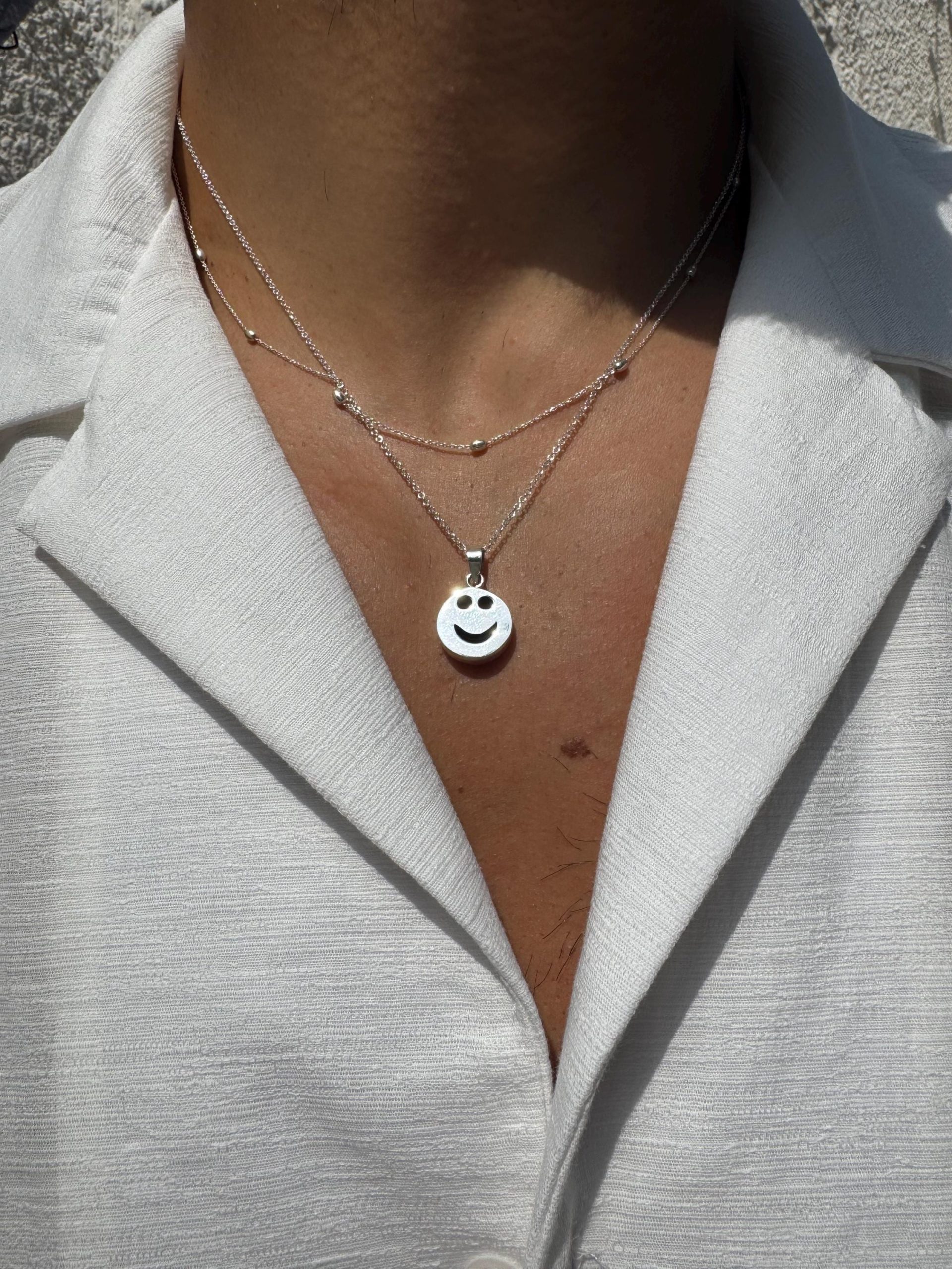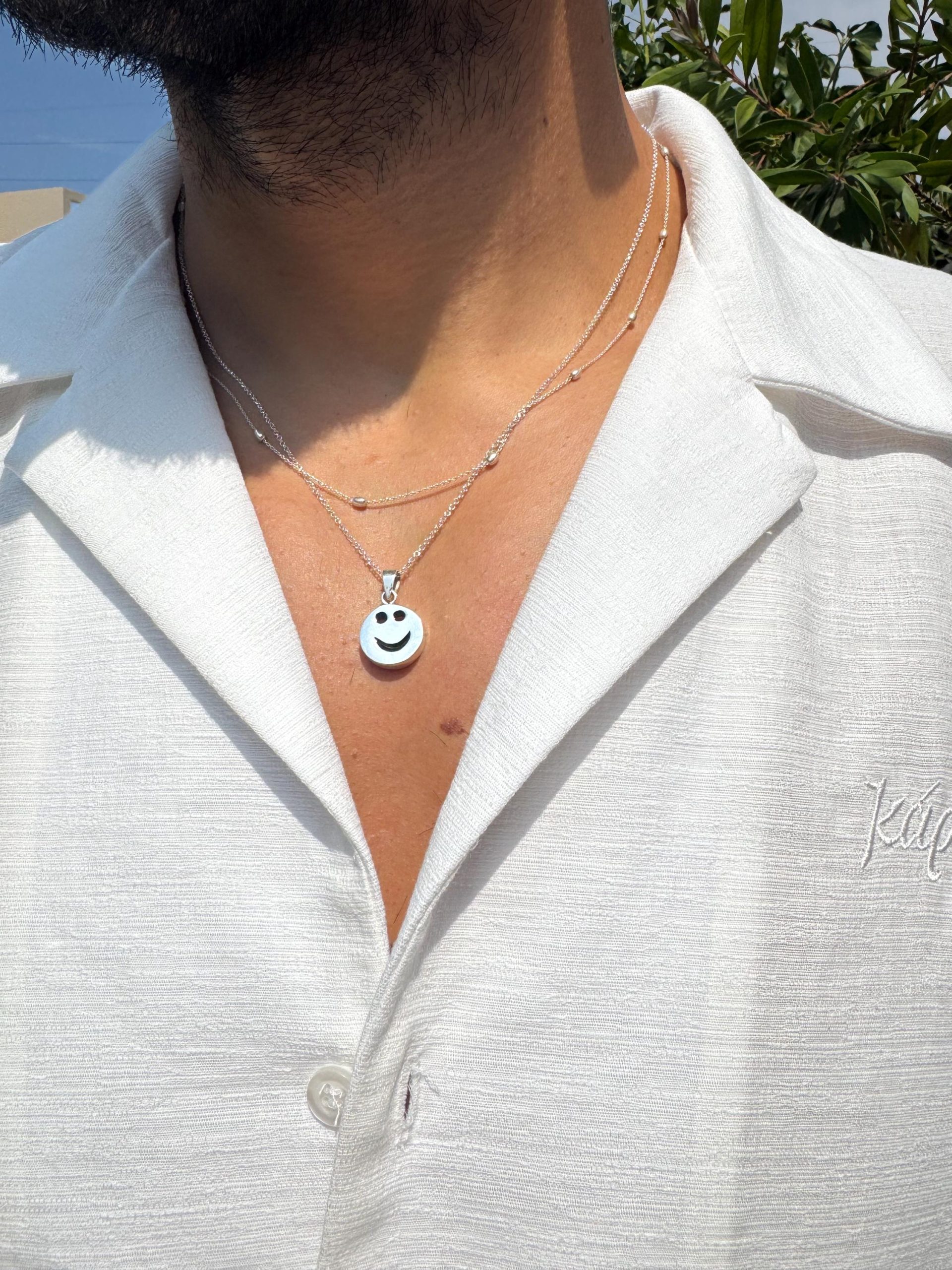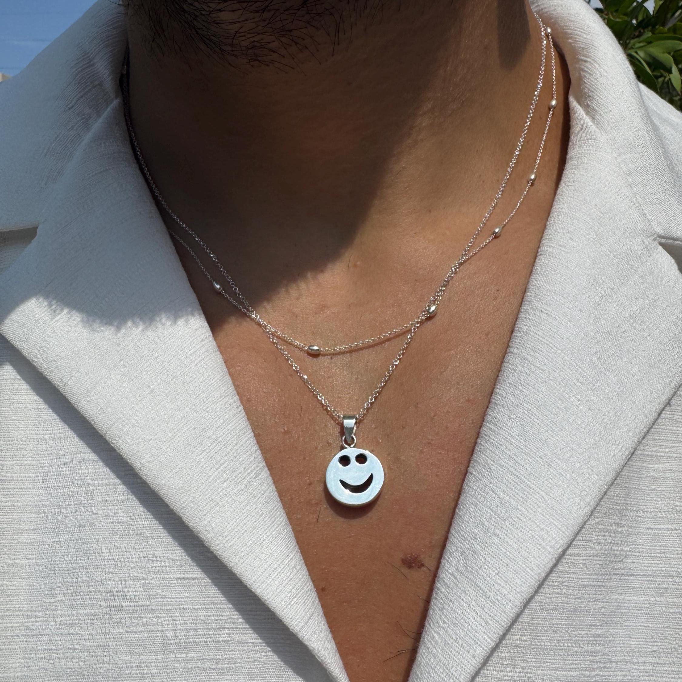 Smiley Face Necklace Mens Pendants Beaded Chain Layers